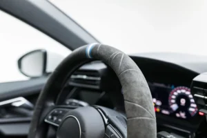 - Nun ziehen Sie nun den Lenkradbezug links und rechts ins Lenkrad rein, sodass der obere Bereich als auch der linke und rechte mit dem Lenkradbezug verdeckt sind
