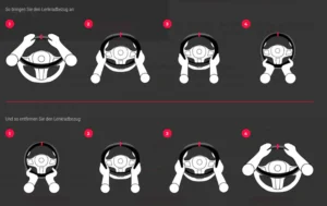 2. Ein Bezug aus Alcantara mit eingravierten Mustern und einer Rennsport Markierung, welches noch mehr Grip ermöglicht