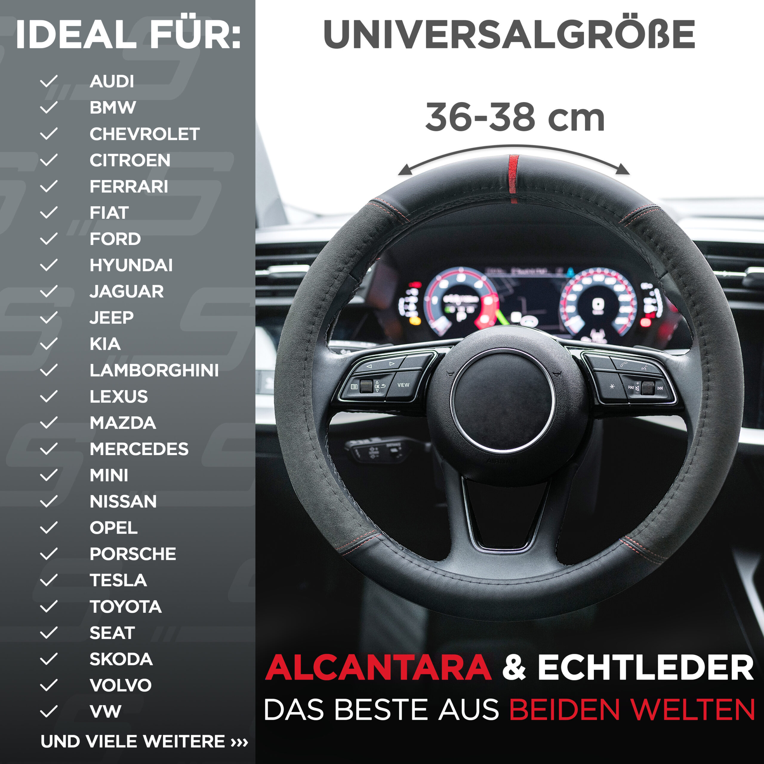 S-Tetic® Lenkradbezug | Alcantara + Nappaleder | Rote 12-Uhr-Markierung