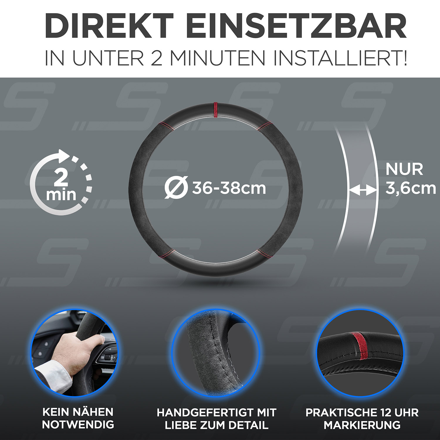 S-Tetic® Lenkradbezug | Alcantara + Nappaleder | Schwarze 12-Uhr-Markierung