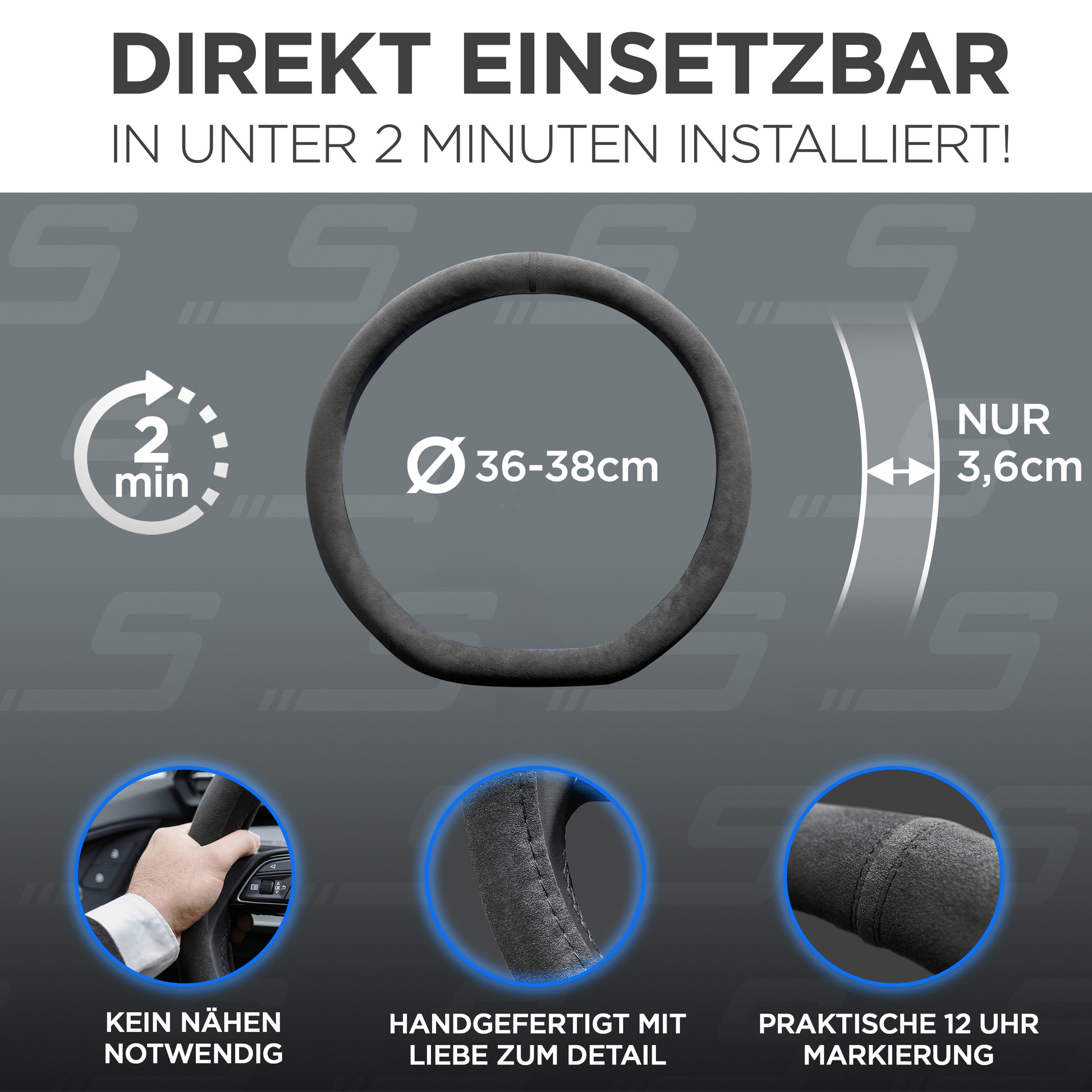 S-Tetic® Premium Alcantara Lenkradbezug – für Sportlenkräder | D-Form | Schwarze 12-Uhr-Markierung