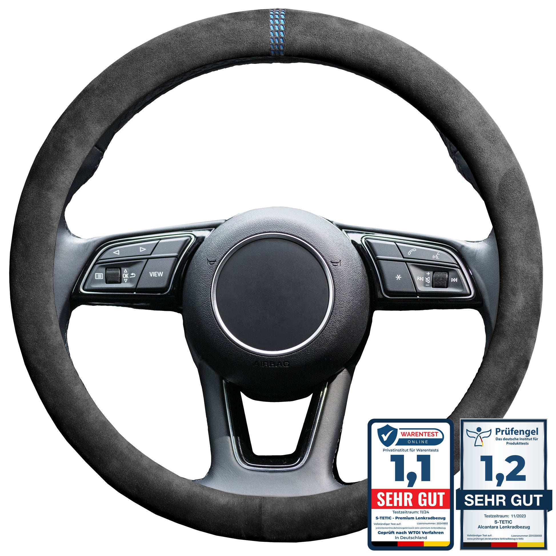 S-Tetic® Premium Alcantara Lenkradbezug | Racing Blue | Blaue 12-Uhr Markierung